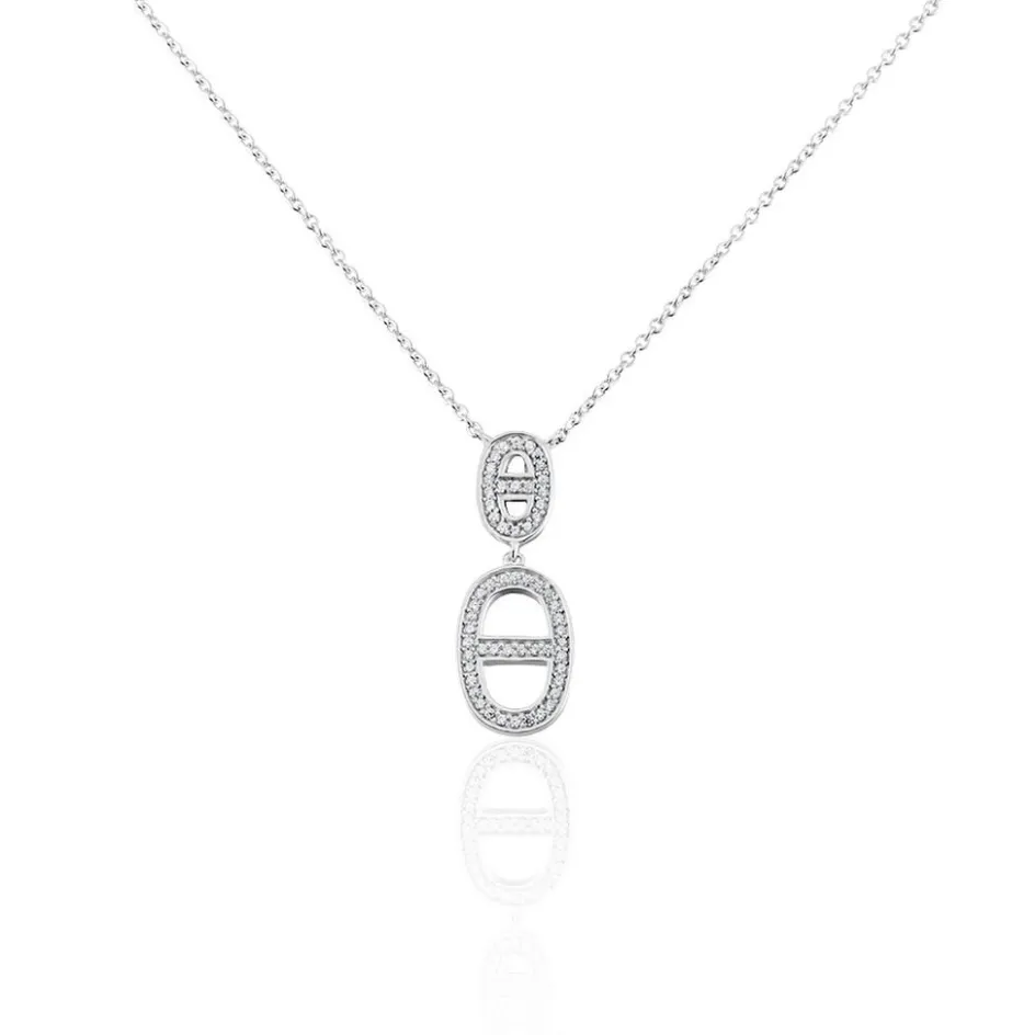 Collier Argent Blanc 925/1000 Maillon Pavage Oxydes De Zirconium Maille Forçat 44cm