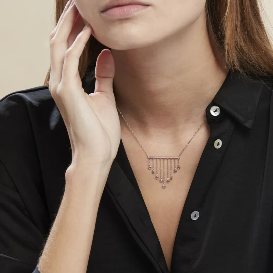 Collier Argent Blanc 925/1000 Barre Multichaines Oxydes De Zirconium Serti Clos Maille Forçat 44cm