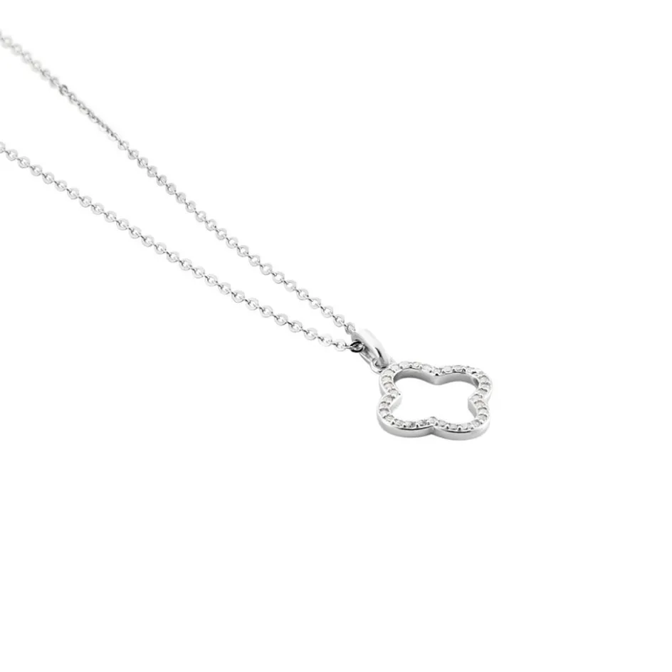 Collier Argent Blanc 925/1000 Fleur Oxydes De Zirconium Sertis Pavage Maille Jaseron 42cm