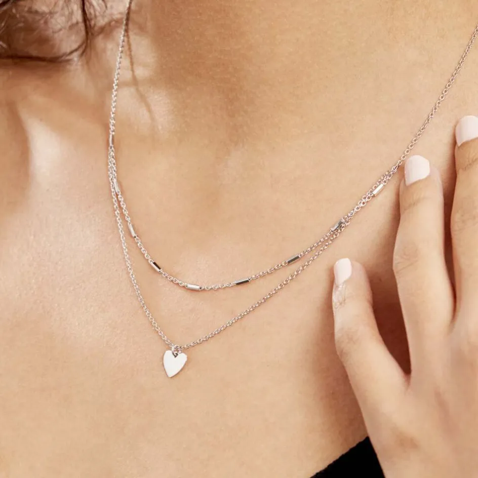 Collier Argent Blanc 925/1000 C艙ur Double Mailles Forcat Et Fantaisie 45cm