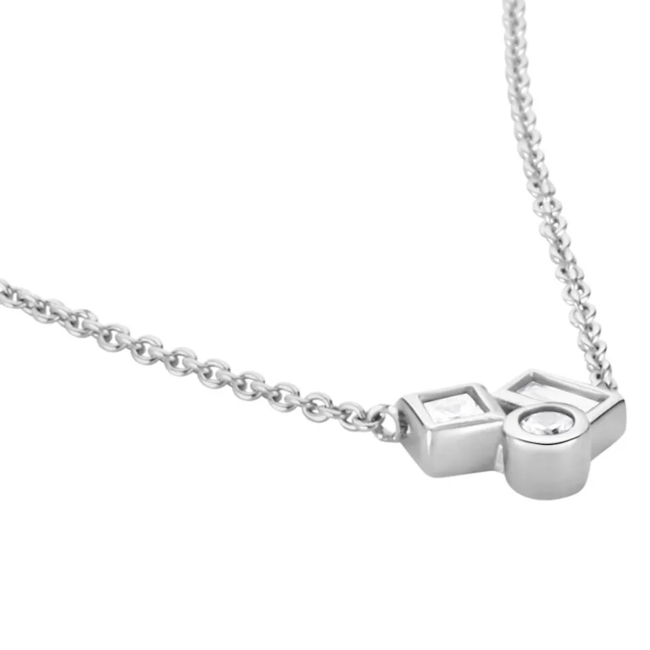 Collier Argent 925/1000 Formes Géometriques Micro Serti Oxydes De Zirconium Maille Forçat 42+3cm