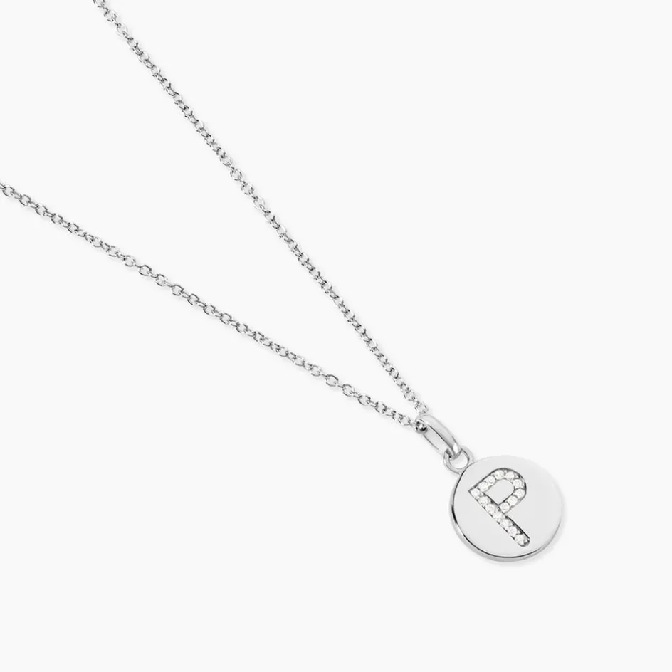 Collier Argent 925/1000 eugenien Pendentif Lettre P Pavage Oxydes De Zirconium Maille Forcat 45cm