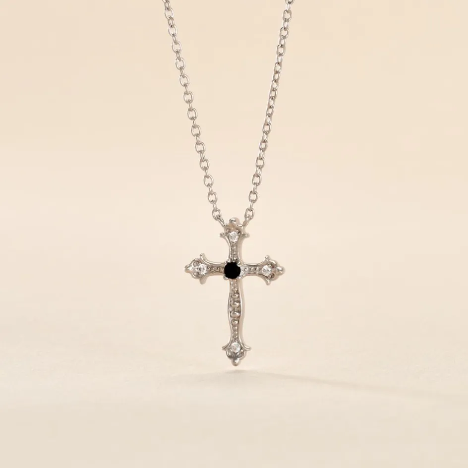 Collier Argent 925/1000 florian Croix Gothique Micro-setting Oxydes De Zirconium Maille Forçat 45cm