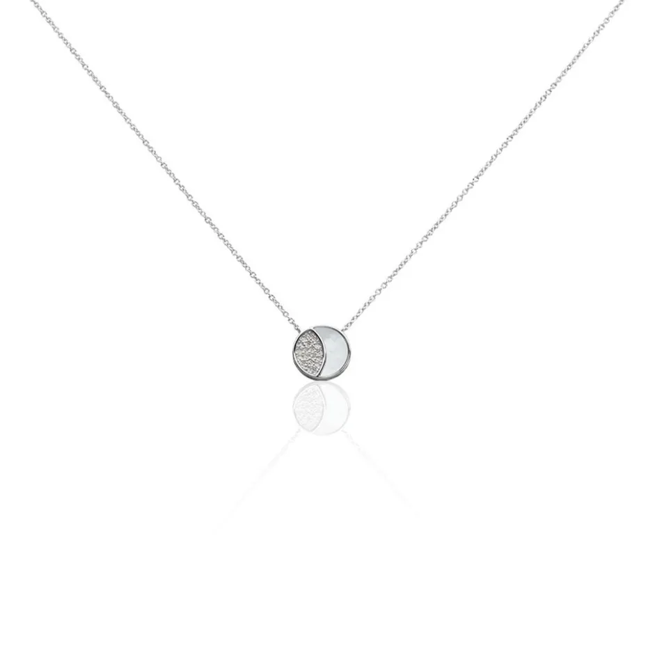 Collier Argent 925/1000 haile Lune Nacre Pavage Oxydes De Zirconium Maille Forcat 45cm