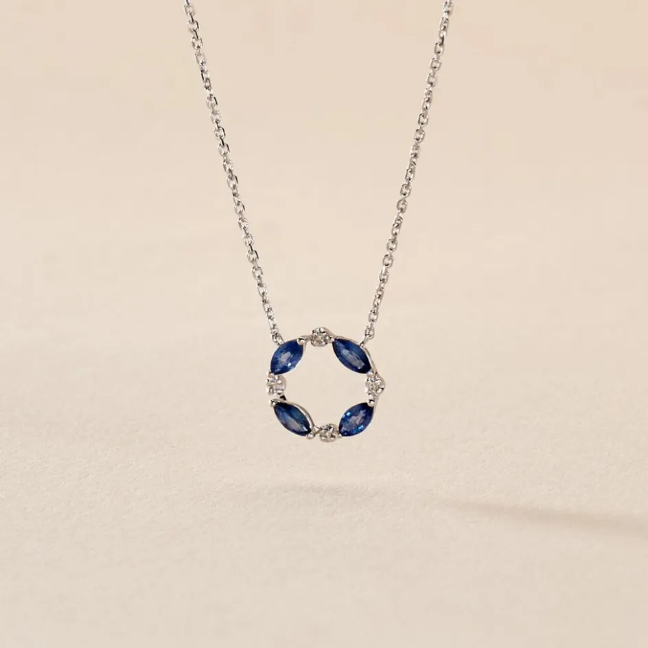 Collier Or Blanc 375/1000 Cercle Saphirs Et Diamants 42cm