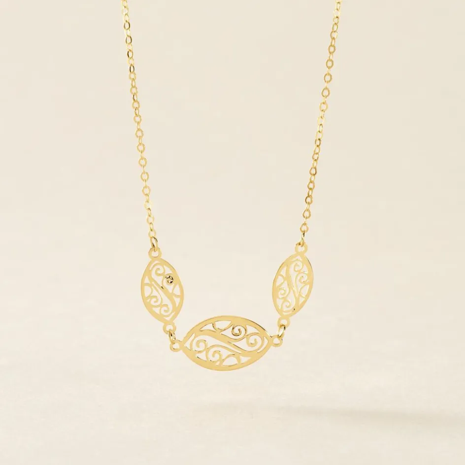 Collier Or Jaune 375/1000 3 Filigranes Maille Forcat Ronde 40+2cm