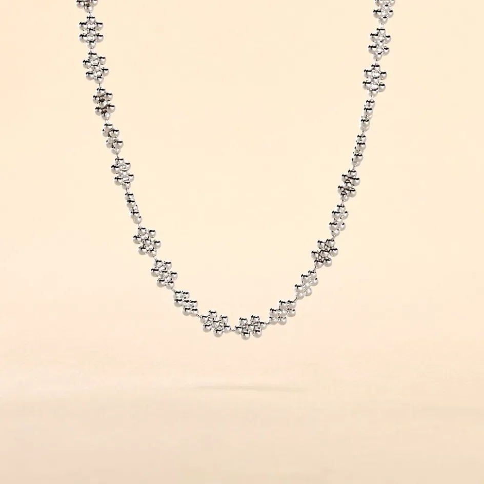 Collier Argent 925/1000 Fleurs Perlées 38cm