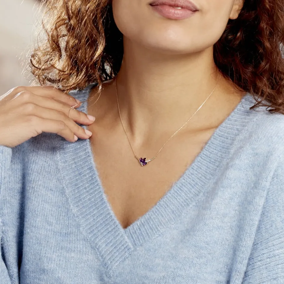 Collier Or Jaune 375/1000 Améthystes Navettes Formes Fleurs Accompagne Oxydes De Zirconium 42cm
