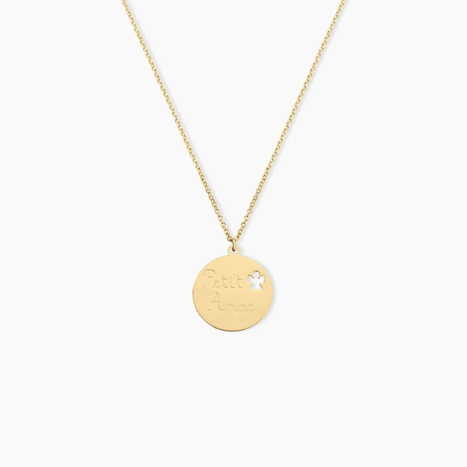 Collier Or Jaune 375/1000 Pastille Message Petit Ange Maille Jaseron 38cm