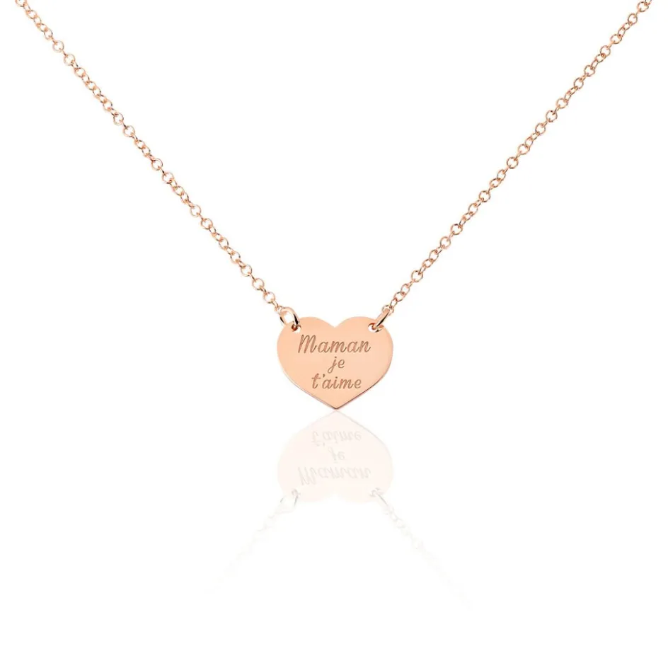 Collier Argent Rose 925/1000 Avec C艙ur Ecriture Maman Je T’aime 42cm