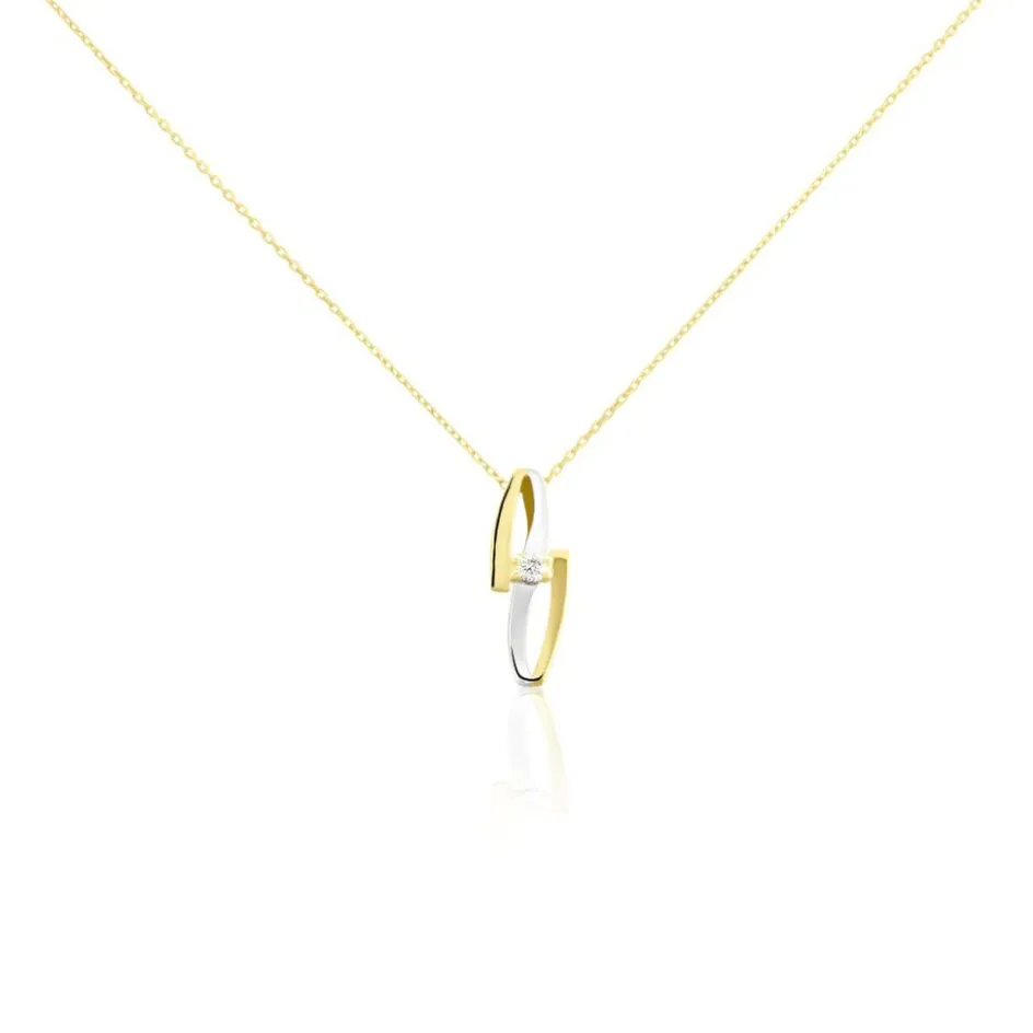 Collier Or Bicolore 375/1000 Diamants 0.05cts 42cm