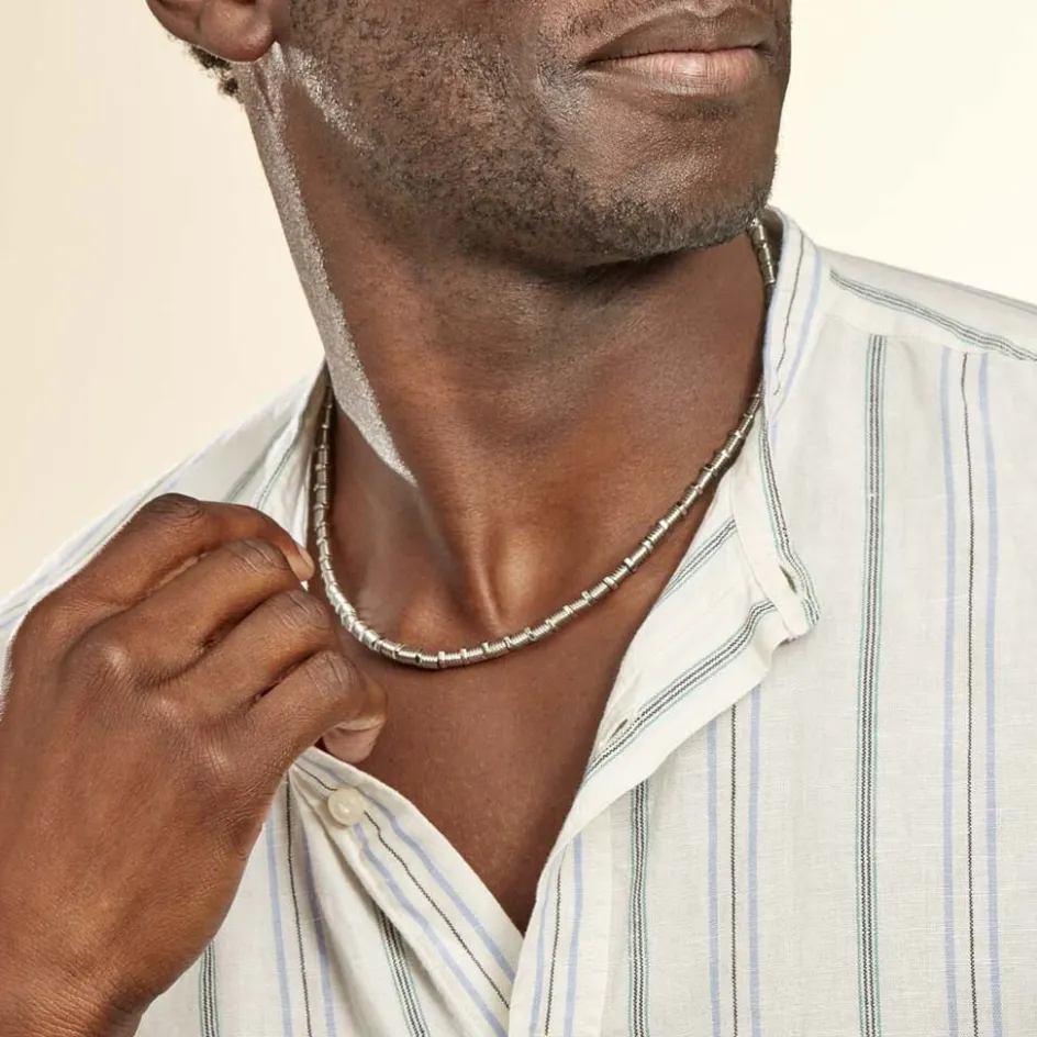 Collier Acier Gris Effet Ecrous Mecaniques 49.5cm
