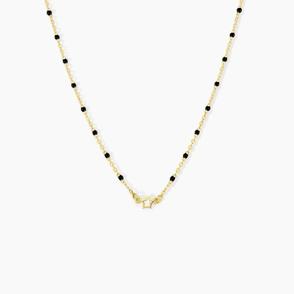 Collier Court Argent Jaune 925/1000 Étoile Oxyde De Zirconium Serti Clos Boules Email Noir Maille Forcat 35+3Cm