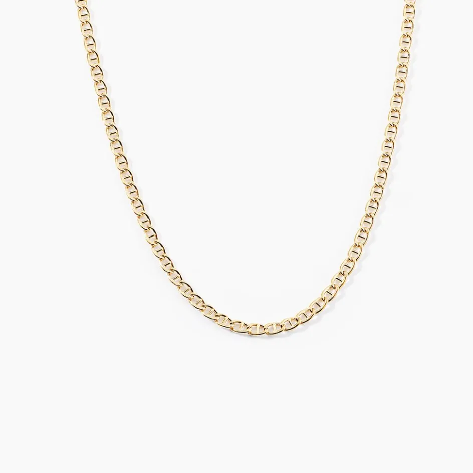 Collier Or Jaune 375/1000 Maille Marine Ovale Largeur 2.6mm 42cm