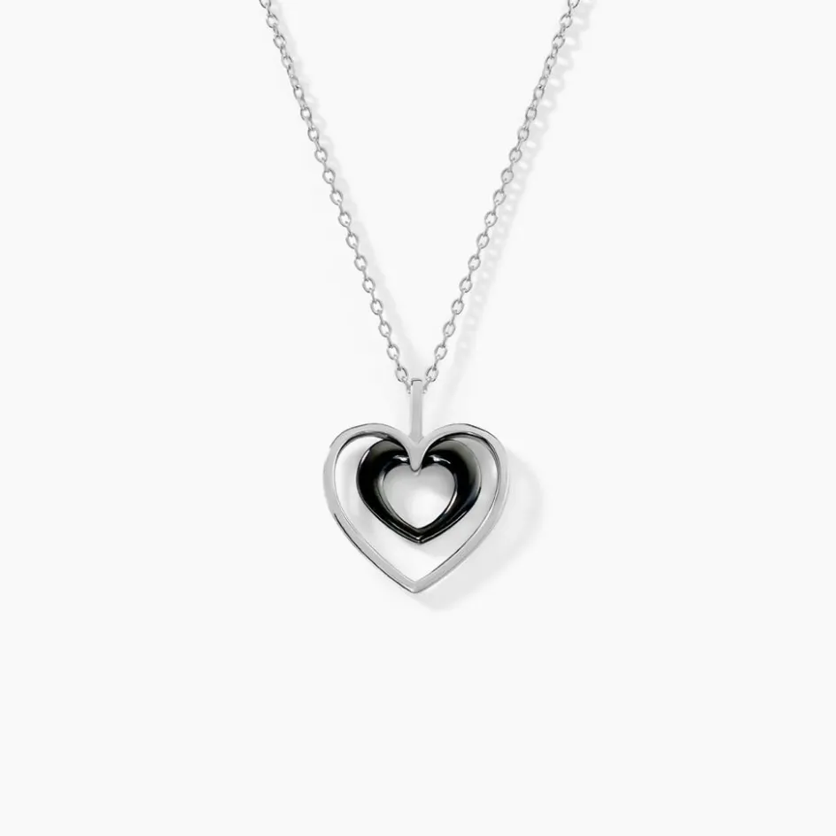 Collier Argent Blanc 925/1000 Coeur Ceramique Noire Et Coeur Argent Blanc 925/1000 Oxydes De Zirconium 45cm