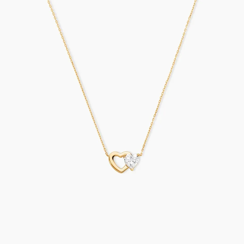 Collier Or Jaune 375/1000 Double C艙ur Maille Forçat Oxyde De Zirconium 38+4cm