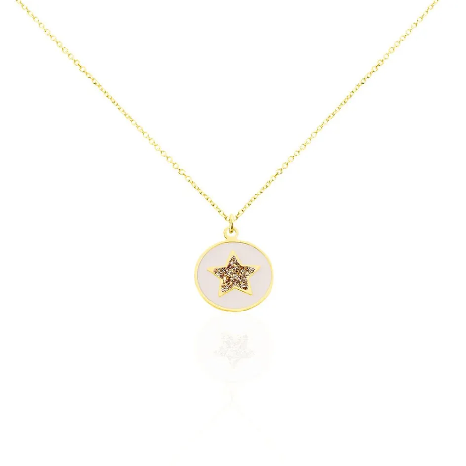 Collier Or Jaune 375/1000 Pastille Smalto Rose Etoile Glitter Dore Maille Jaseron 38cm