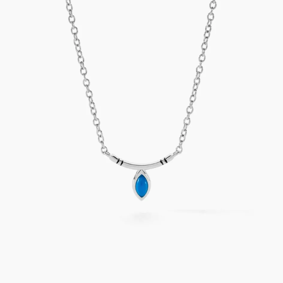 Collier Argent Blanc 925/1000 Goutte Turquoise Maille Jaseron 42+3cm