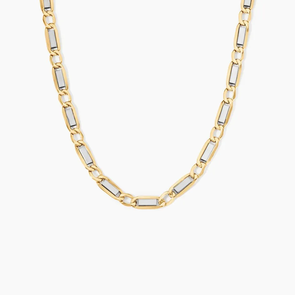 Collier Maille Or Bicolore 375/1000 Maille Plaquette Alternée 1/1 Largeur 4.7mm 50cm