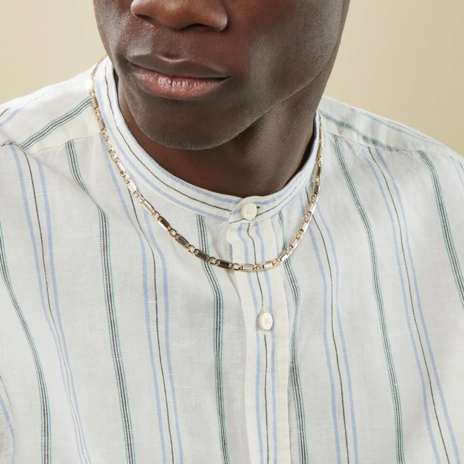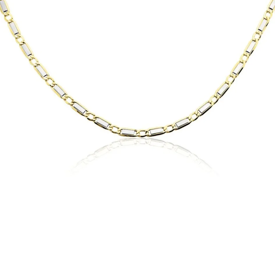 Collier Maille Or Bicolore 375/1000 Maille Plaquette Alternée 1/1 Largeur 4.7mm 65cm