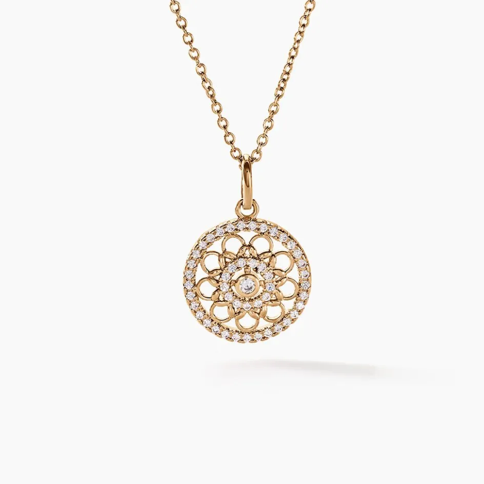 Collier Plaqué Or Jaune Rosace Pavage Oxydes De Zirconium Maille Jaseron 42+3cm