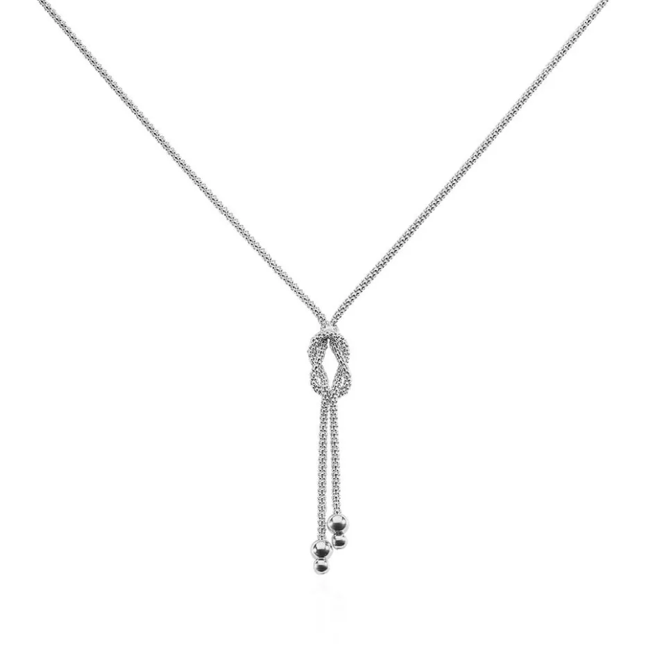 Collier Argent Blanc 925/1000 Forme Cravate Noeud Marin Maille Pop Corn 45cm