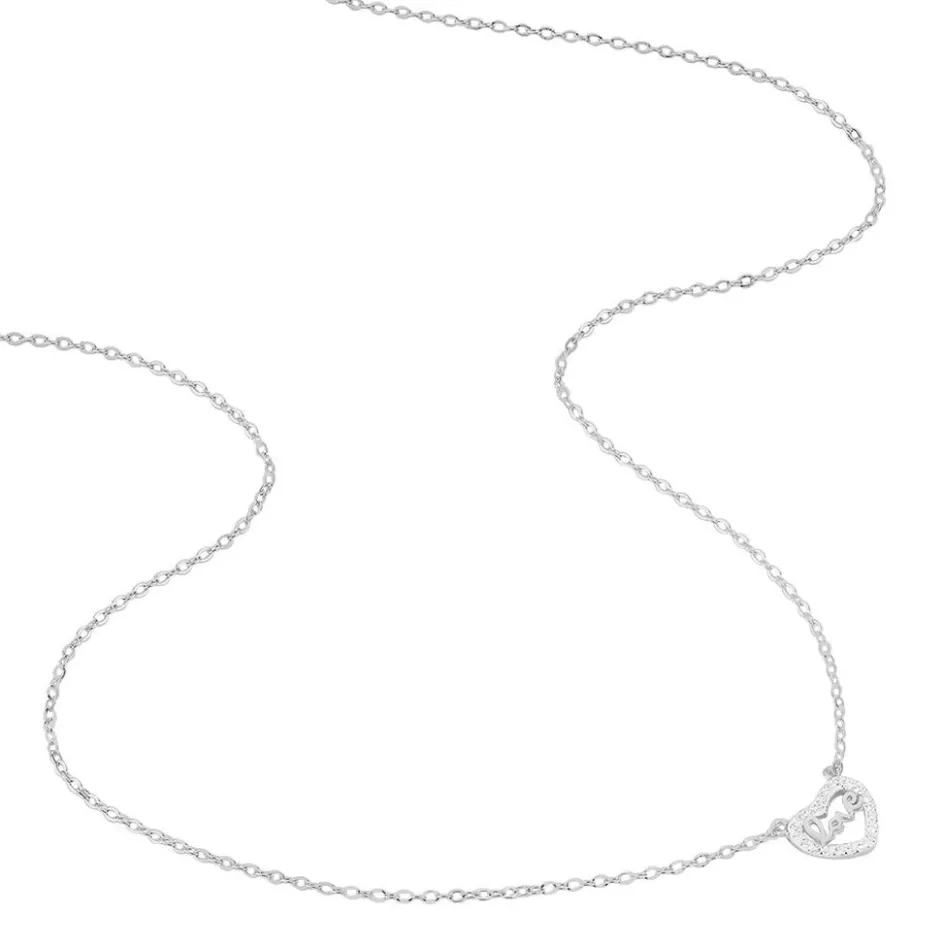 Collier Argent 925/1000 delicata Motif C艙ur Pave Oxydes De Zirconium + Ecriture Love 45cm
