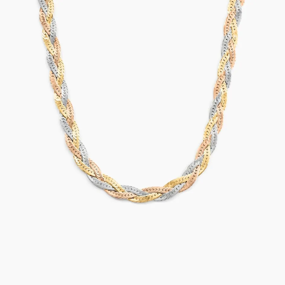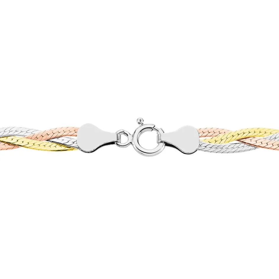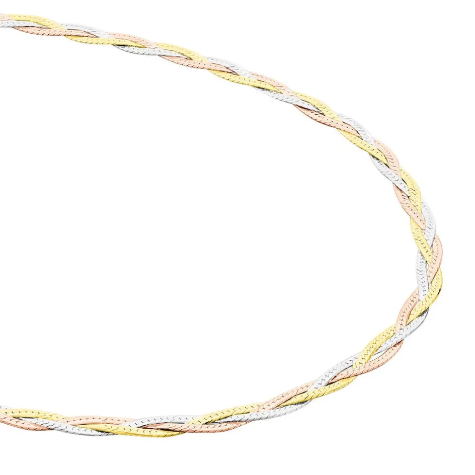 Collier Argent Tricolore 925/1000 Maille Tresse 3 Fils Largeur 4.5mm 42cm