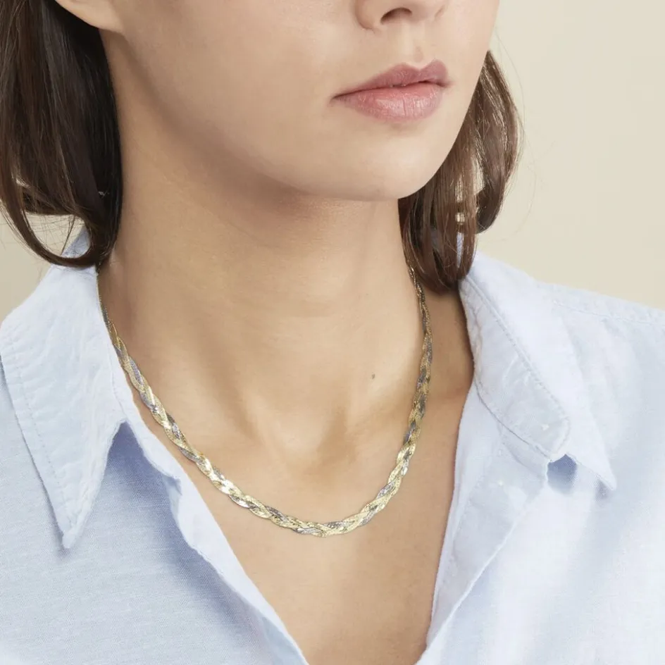 Collier Argent Bicolore 925/1000 Maille Tresse 3 Fils Largeur 4.5mm 45cm