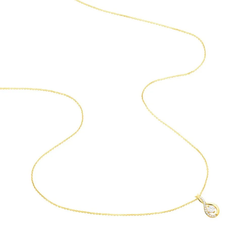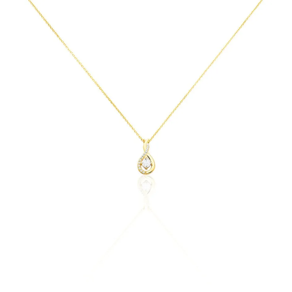 Collier Or Jaune 375/1000 Goutte Entrelacée Oxydes De Zirconium 43cm