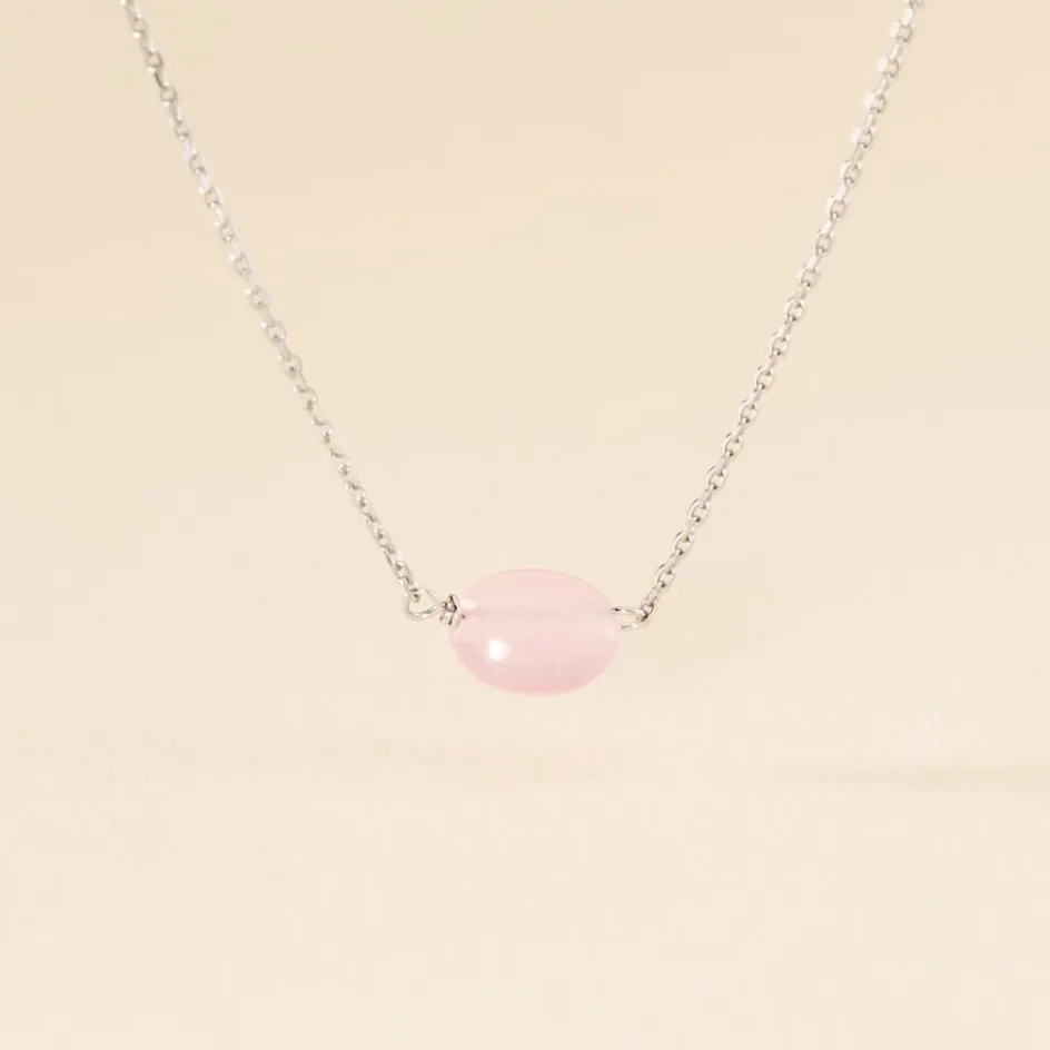 Collier Argent Blanc 925/1000 Maille Forcat Quartz Rose 38cm