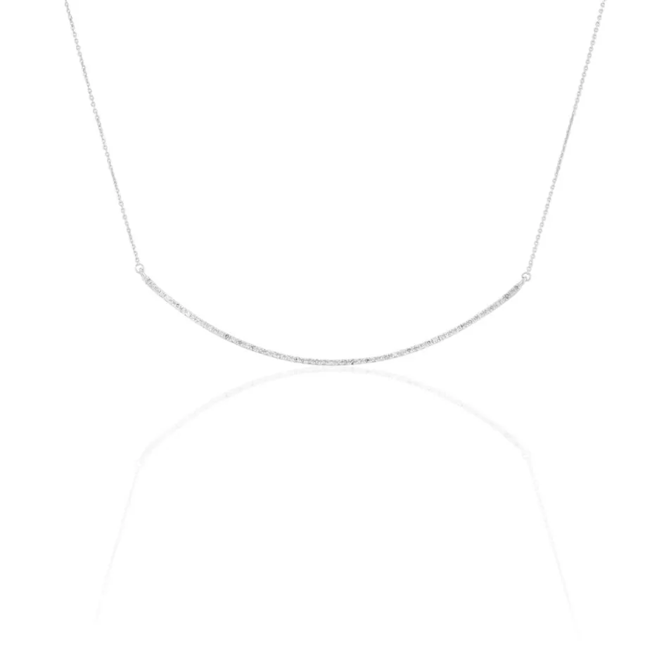Collier Or Blanc 375/1000 Avec Barrette Diamants 42cm