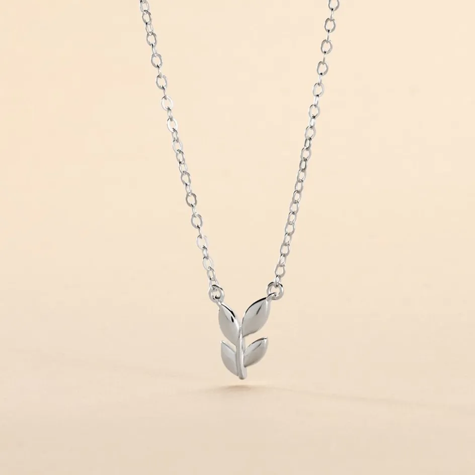 Collier Argent Blanc 925/1000 Motif Feuille Maille Forçat 38cm
