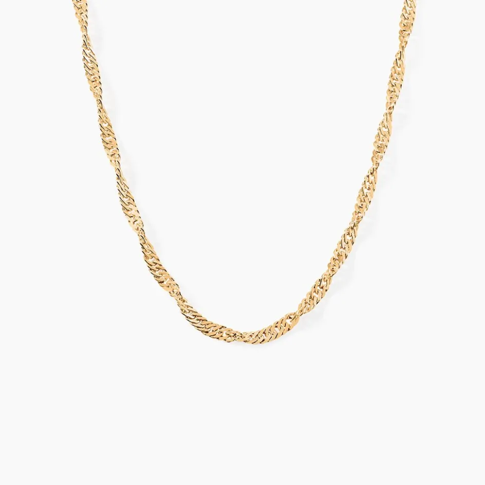Collier Plaque Or Jaune Maille Singapour Epaisseur 3mm 45cm