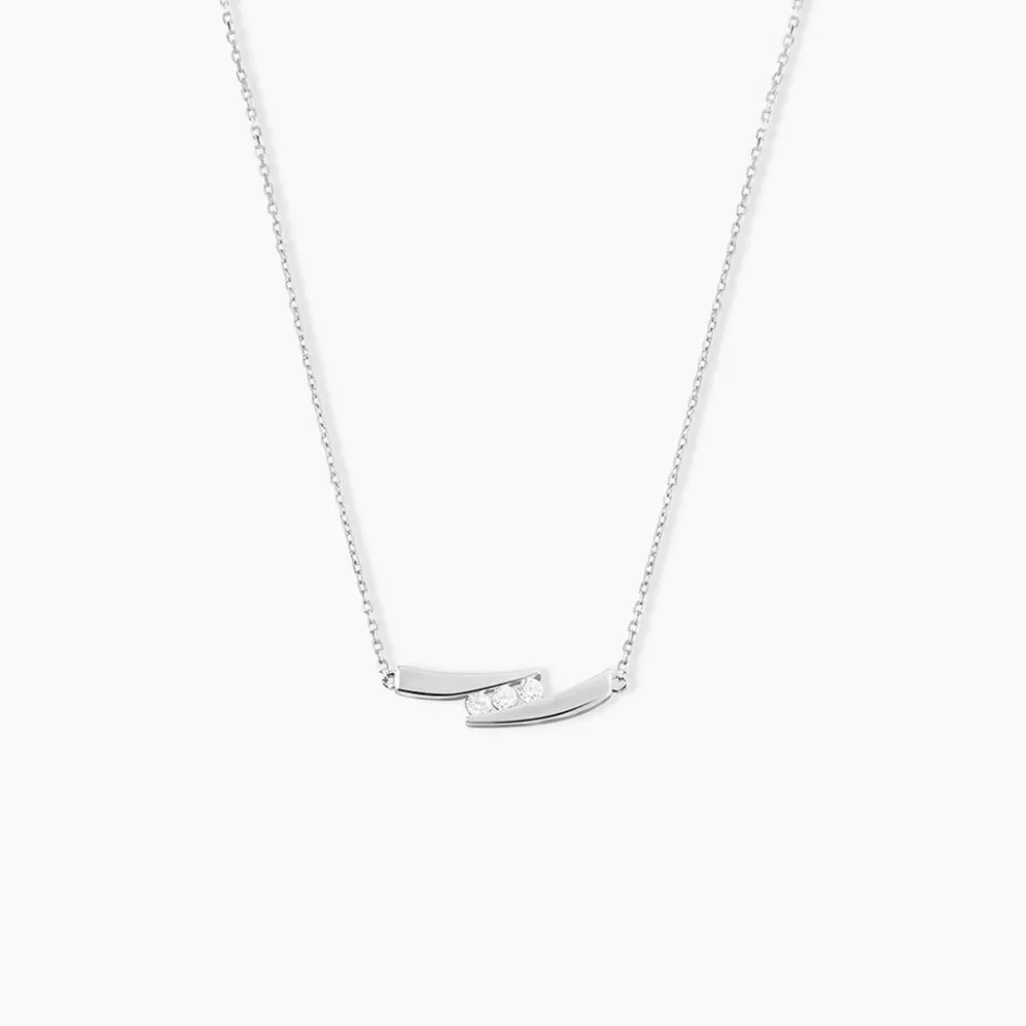 Collier Or Blanc 375/1000 Trilogie Diamants 0.10cts 42cm