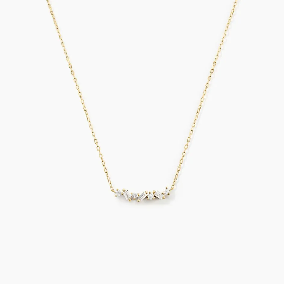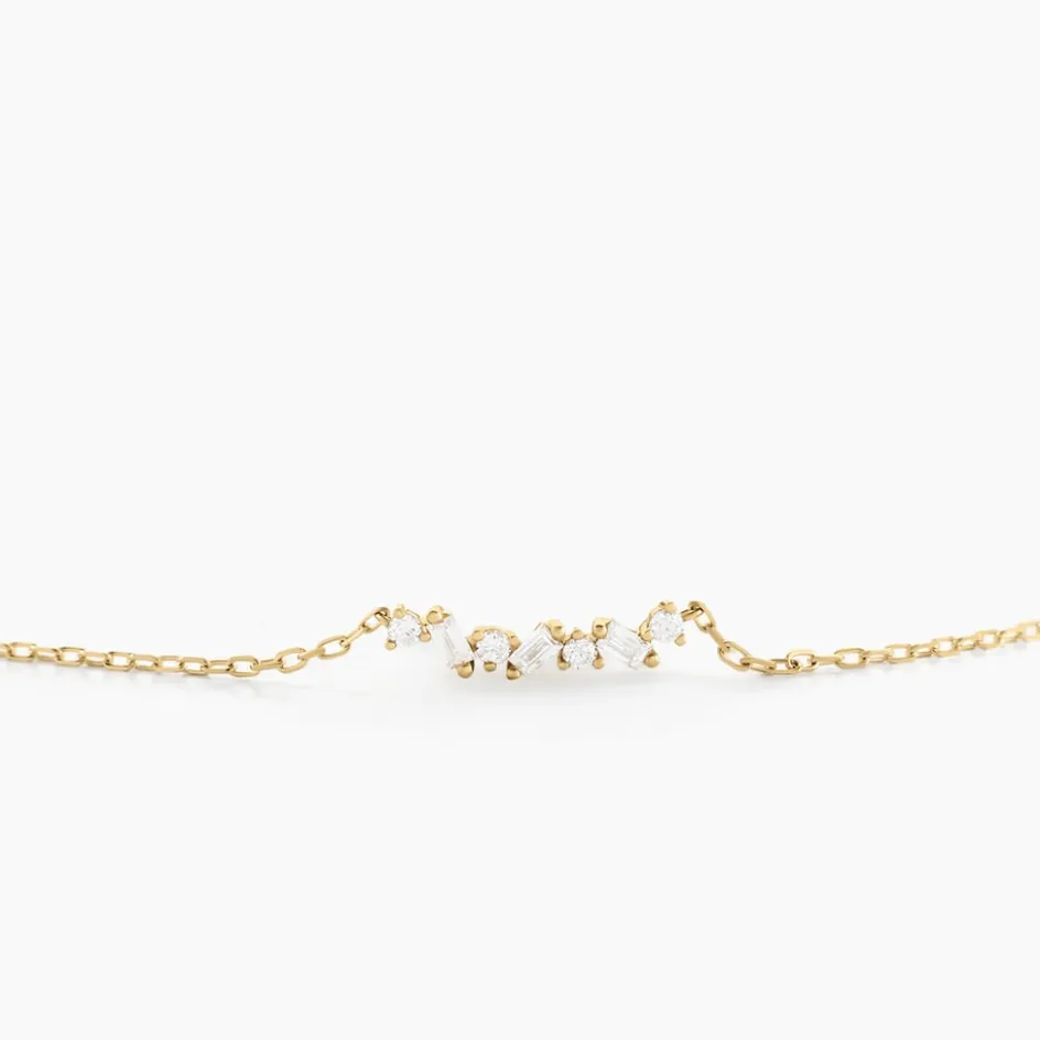 Collier Or Jaune 375/1000 Jardin De Pierres Diamants Synthetiques Baguettes 0.10cts Sertis Griffes Maille Forcat 40+2cm