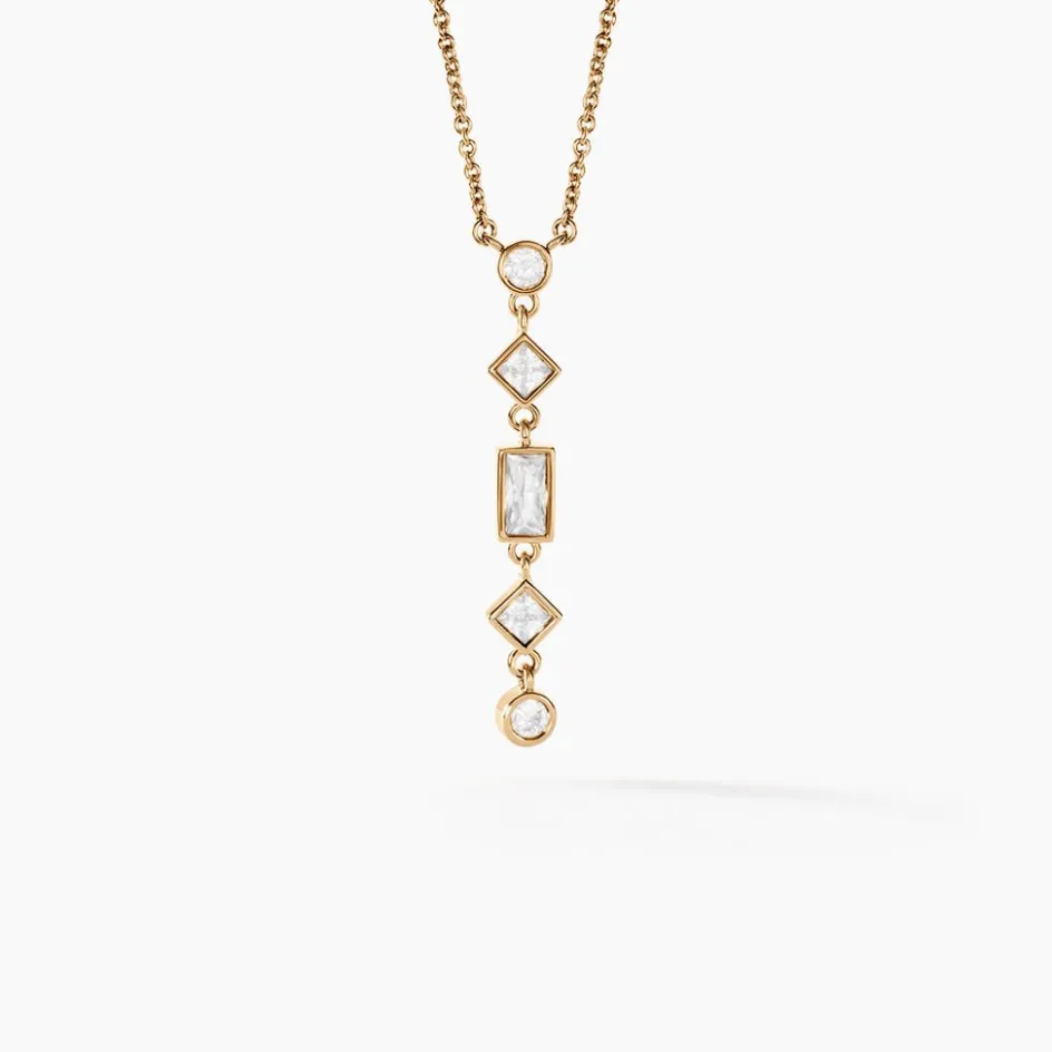 Collier Plaqué Or Jaune Forme Cravate Oxydes De Zirconium Rectangles Et Losanges Maille Jaseron 42+3cm