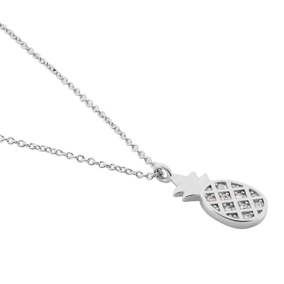 Collier Argent Blanc 925/1000 Ananas Pavage Oxydes De Zirconium 45cm