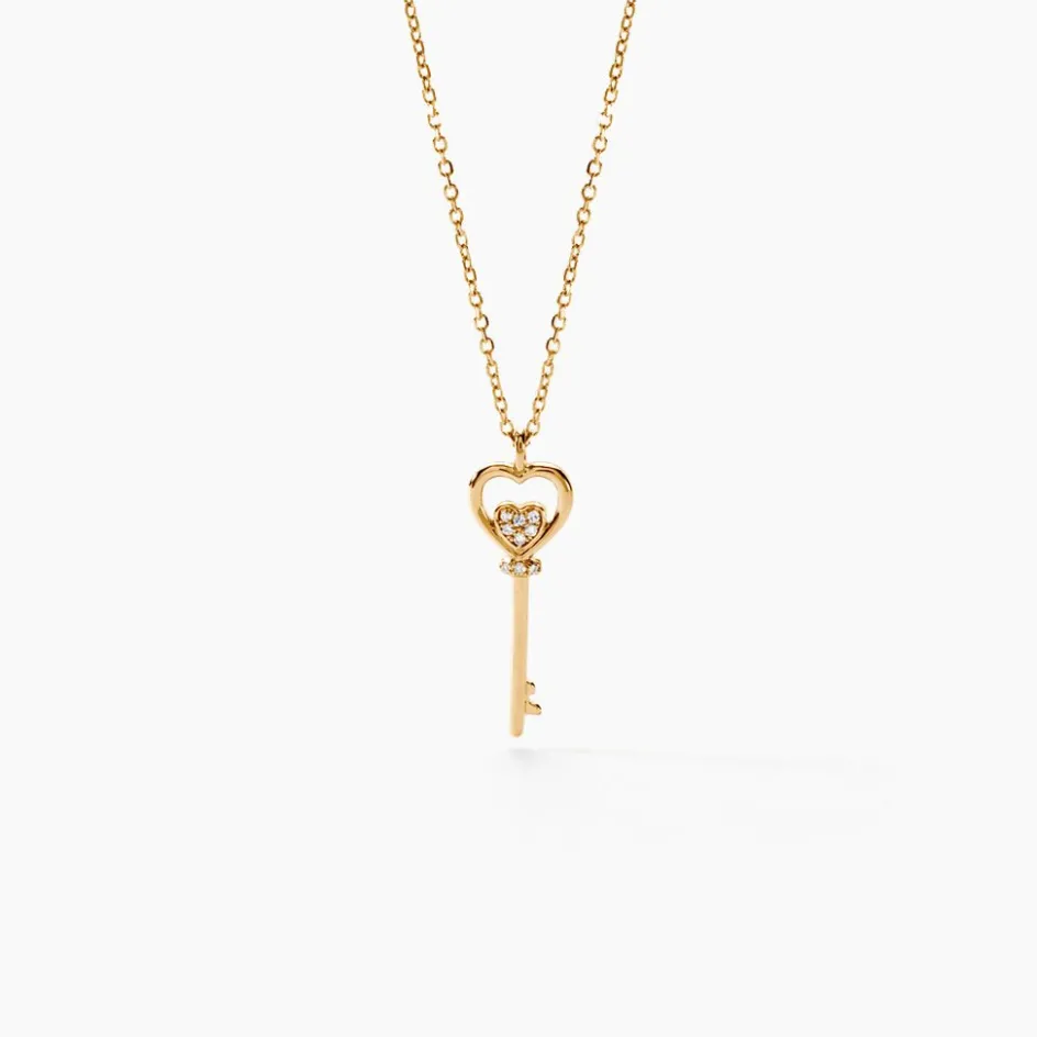 Collier Or Jaune 375/1000 Cle C艙ur Pavage Diamants Maille Forcat 40+2cm