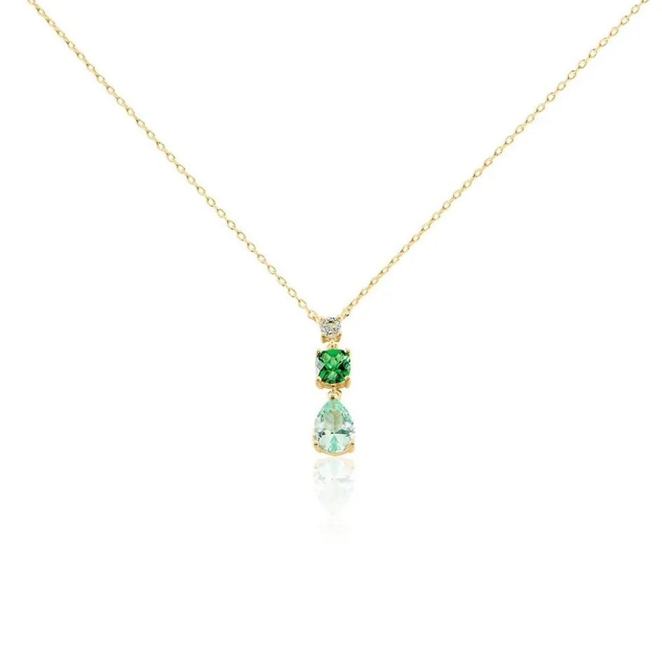 Collier Plaqué Or Jaune Pierres Artificielles Vertes Maille Forçat 45cm