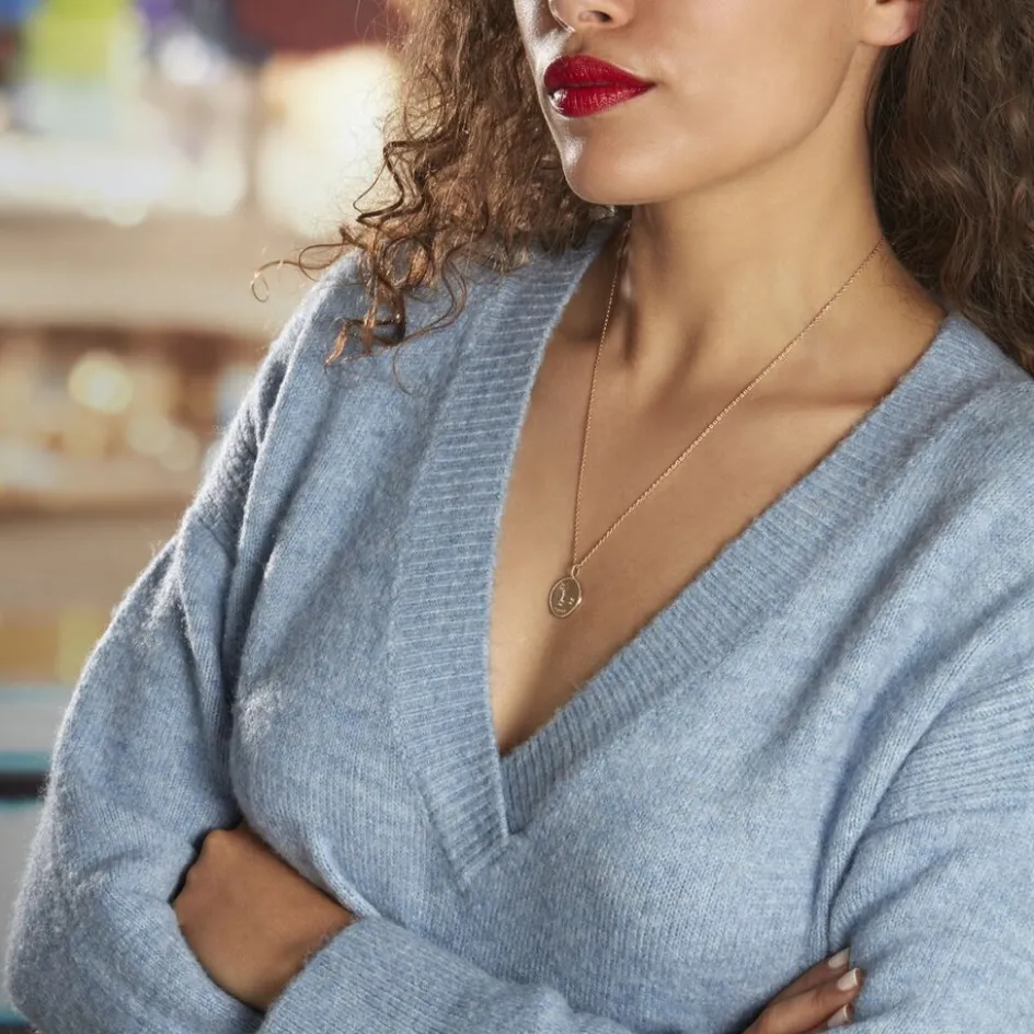 Collier Plaqué Or Jaune Pastille Mate Signe Astrologique Cancer Oxydes De Zirconium Chaine Forcat 50cm