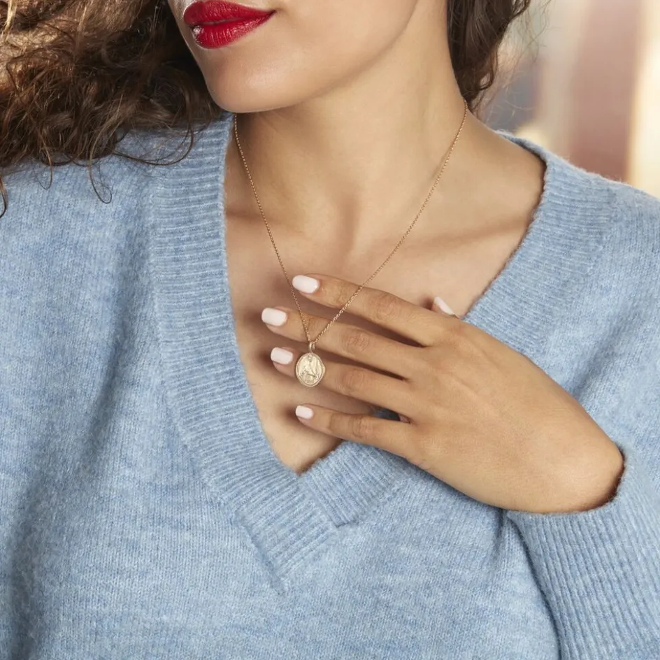 Collier Plaqué Or Jaune Pastille Mate Signe Astrologique Poisson Oxydes De Zirconium Chaine Forcat 50cm