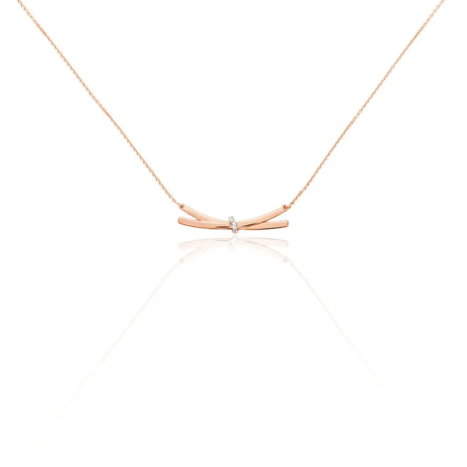 Collier Or Rose 375/1000 Effet Noeud Diamants 0.009cts 43cm