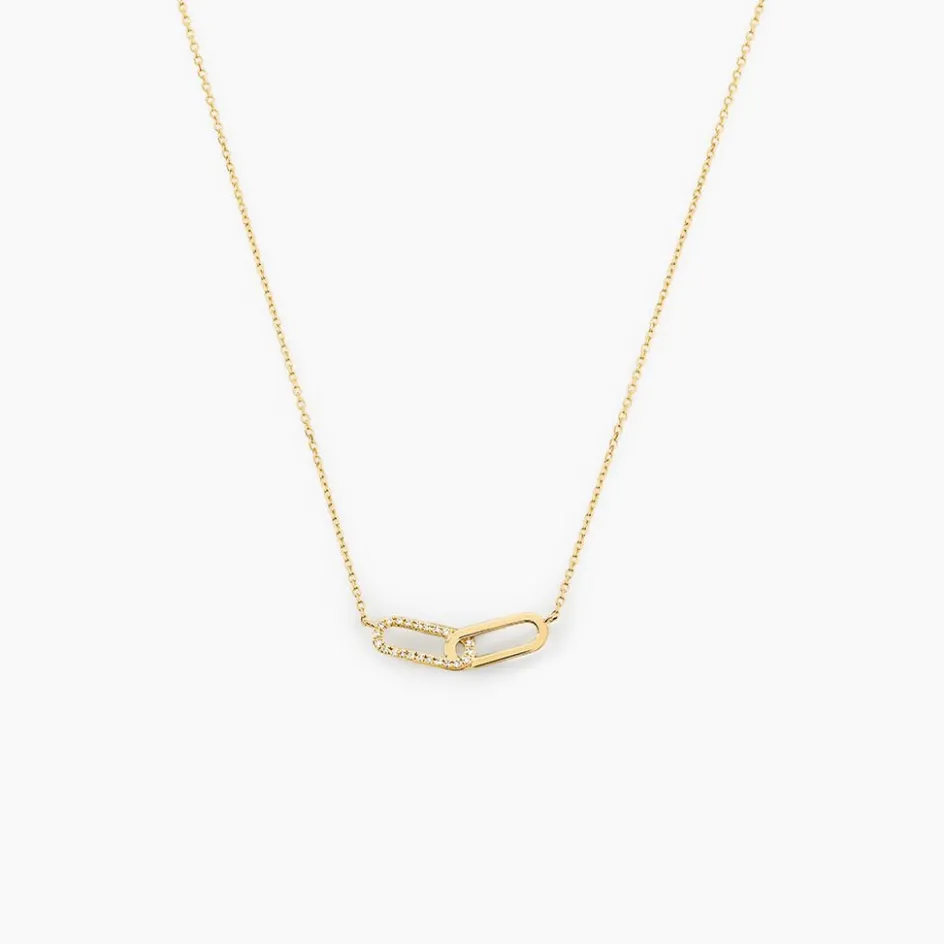 Collier Or Jaune 375/1000 Maillons Ovales Ajoures Pavage Diamant Maille Forcat 40+2cm
