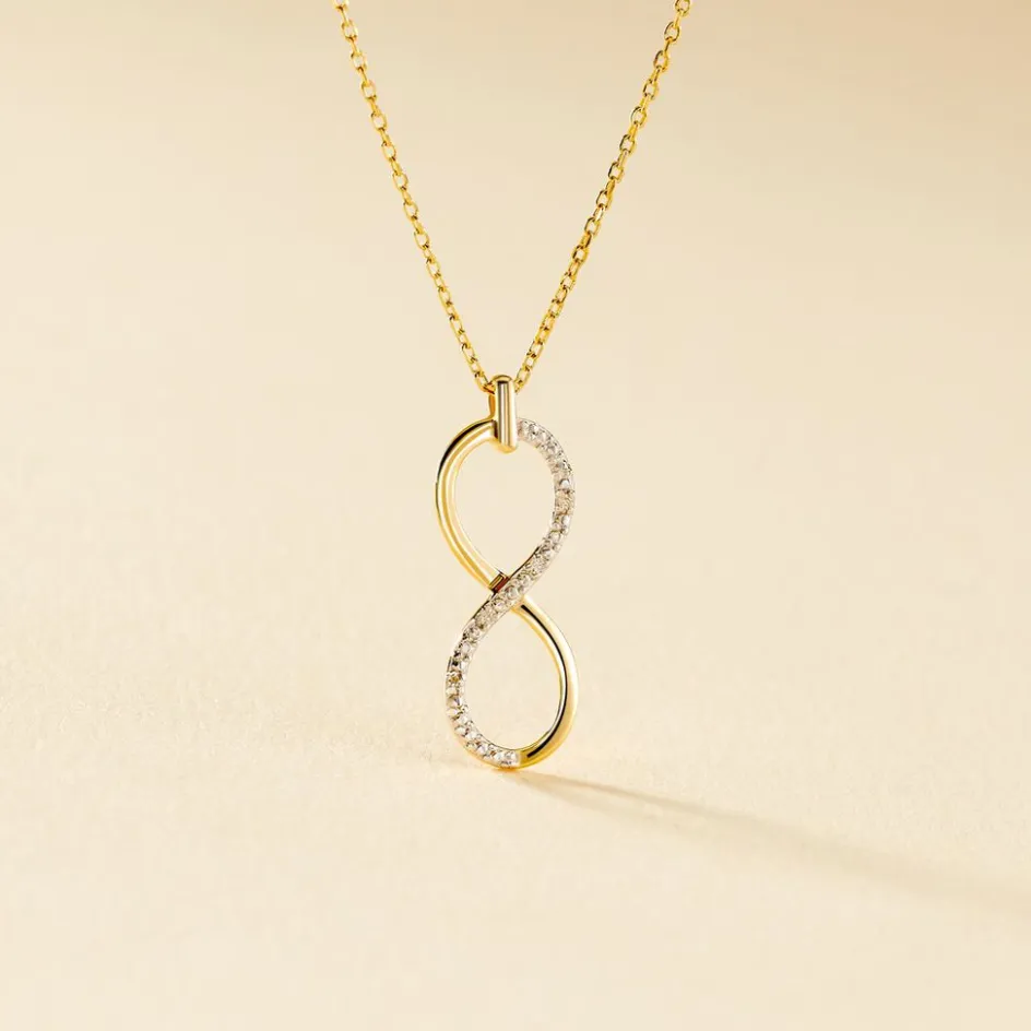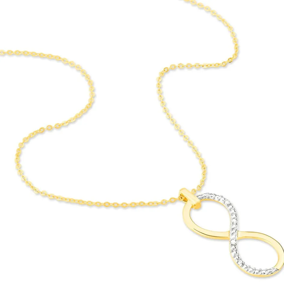 Collier Or Jaune 375/1000 Forme Infini Demi Pavage Diamants 43cm