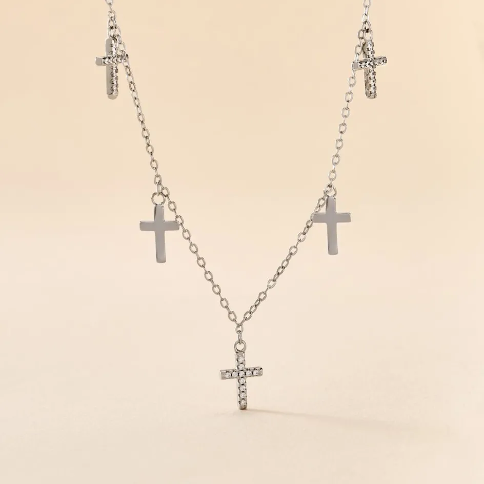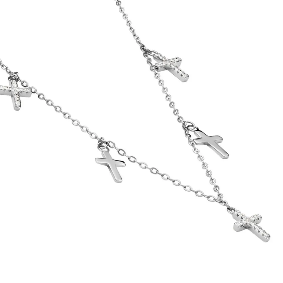 Collier Argent 925/1000 ivah Pampilles Croix Oxydes De Zirconium Maille Forcat 45cm
