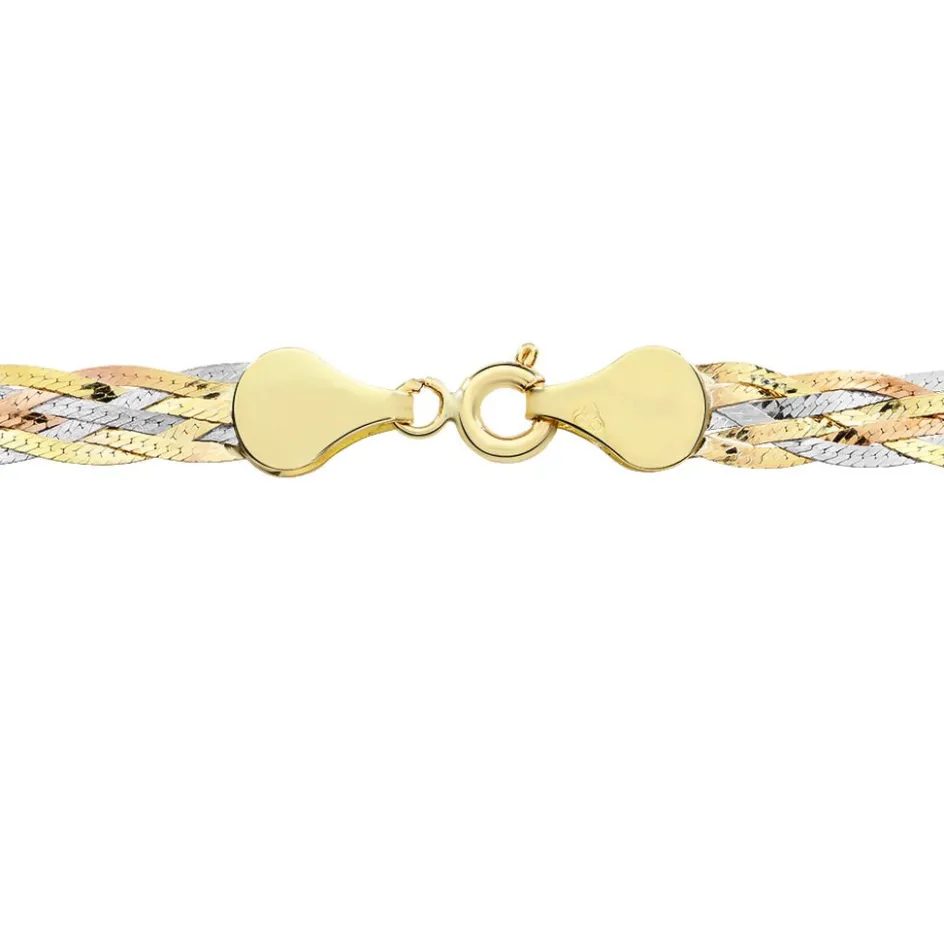 Collier Or Tricolore 375/1000 Tresse 6 Fils 5mm 42cm