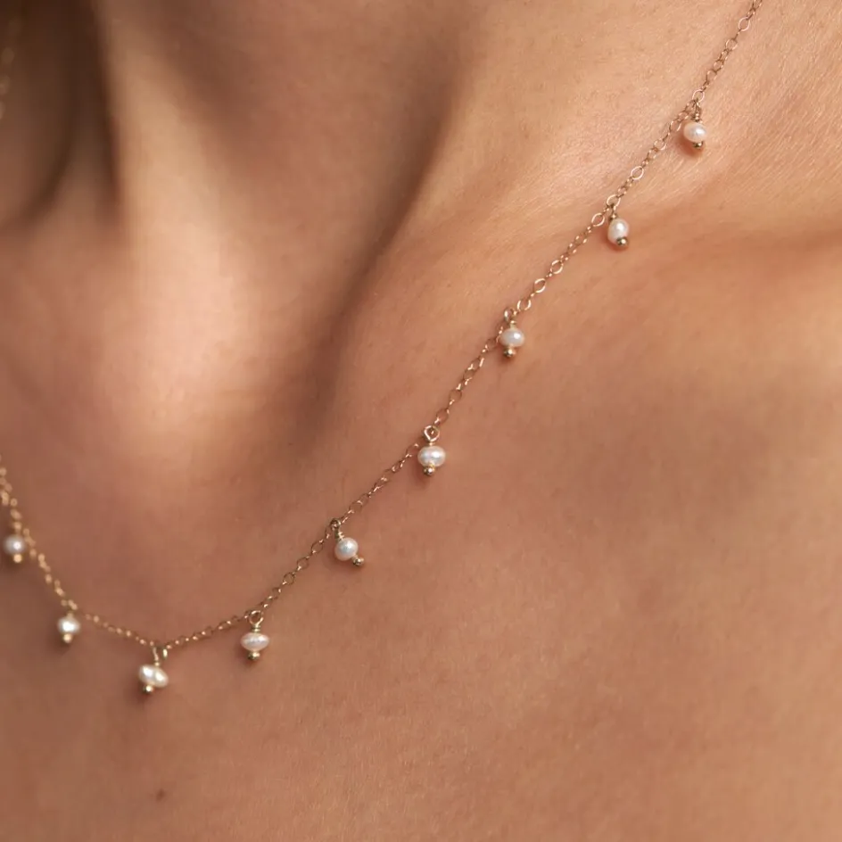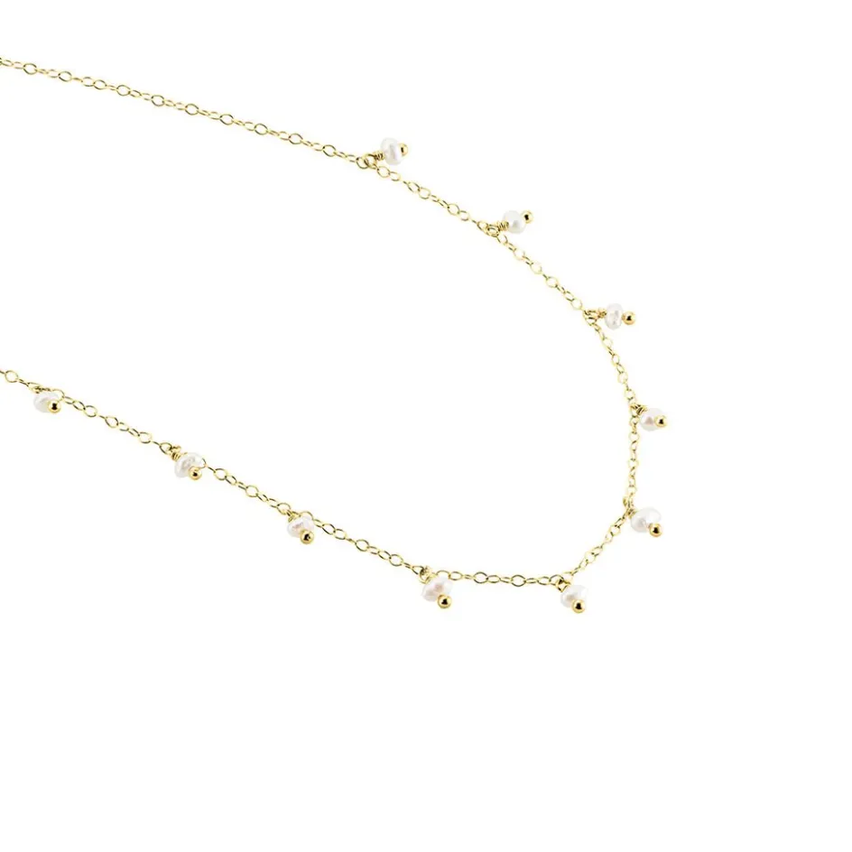 Collier Or Jaune 375/1000 Pampille 11 Perles De Culture Blanches Maille Forcat 40+2cm