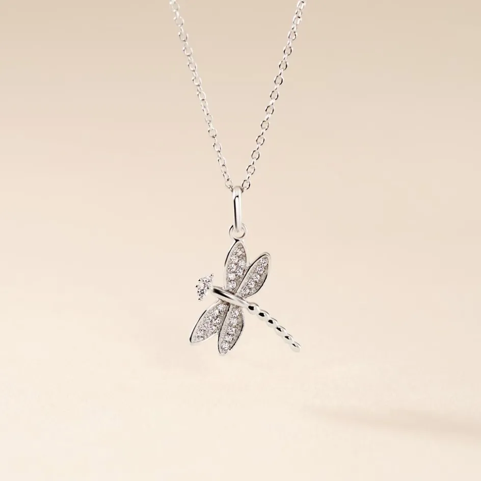 Collier Argent 925/1000 jengen Libellule Pavage Oxydes De Zirconium Maille Forcat 44cm