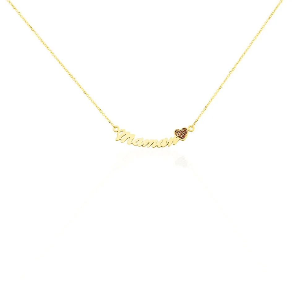 Collier Or Jaune 375/1000 Message Maman Lettres Decoupees C艙ur Glitter Rose Maille Jaseron 40+2cm